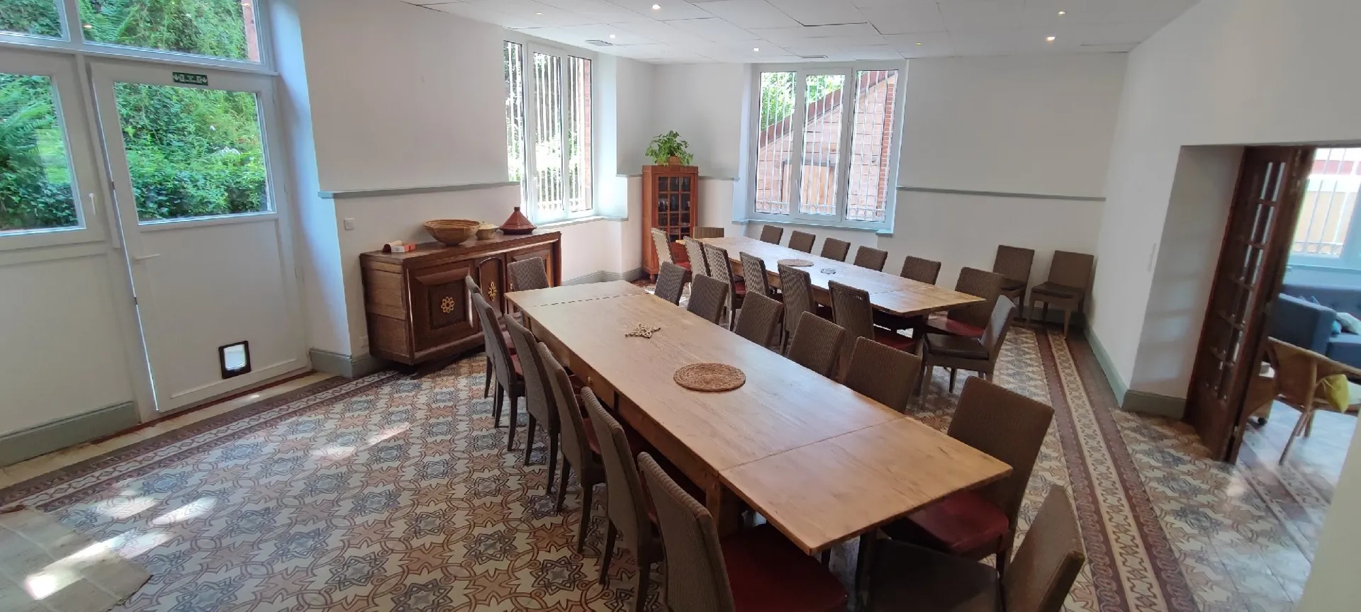 Accès au salon TV, Salle à Manger commune, Terrasse, coin détente sous les arbres, jardin…