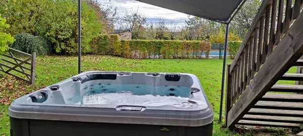 Cuisine équipée ouverte sur séjour (50 m²) salle de douche avec WC et terrasse. Equipements: frigo-congélateur, four, plaque vitrocéramique, lave-vaisselle, lave-linge, etc. Télévision, lecteur DVD, table, canapé. A l’étage: 1 chambre (lit 160) , 2 chambres (2 lits 90) 1 salle de douche + wc. Sont fournis: équipement bébé (sur demande), salon de jardin, barbecue, transat. Le terrain de la propriété (5000 m²) comporte une piscine sécurisée (5x10m) à partager avec transat. A disposition: une salle de sport avec baby-foot et table de ping-pong. Wifi. Jacuzzi privé en extérieur. La piscine 5x10m, à partager avec les 2 autres gîtes est chauffée. Vous pourrez profiter d’un terrain de pétanque.