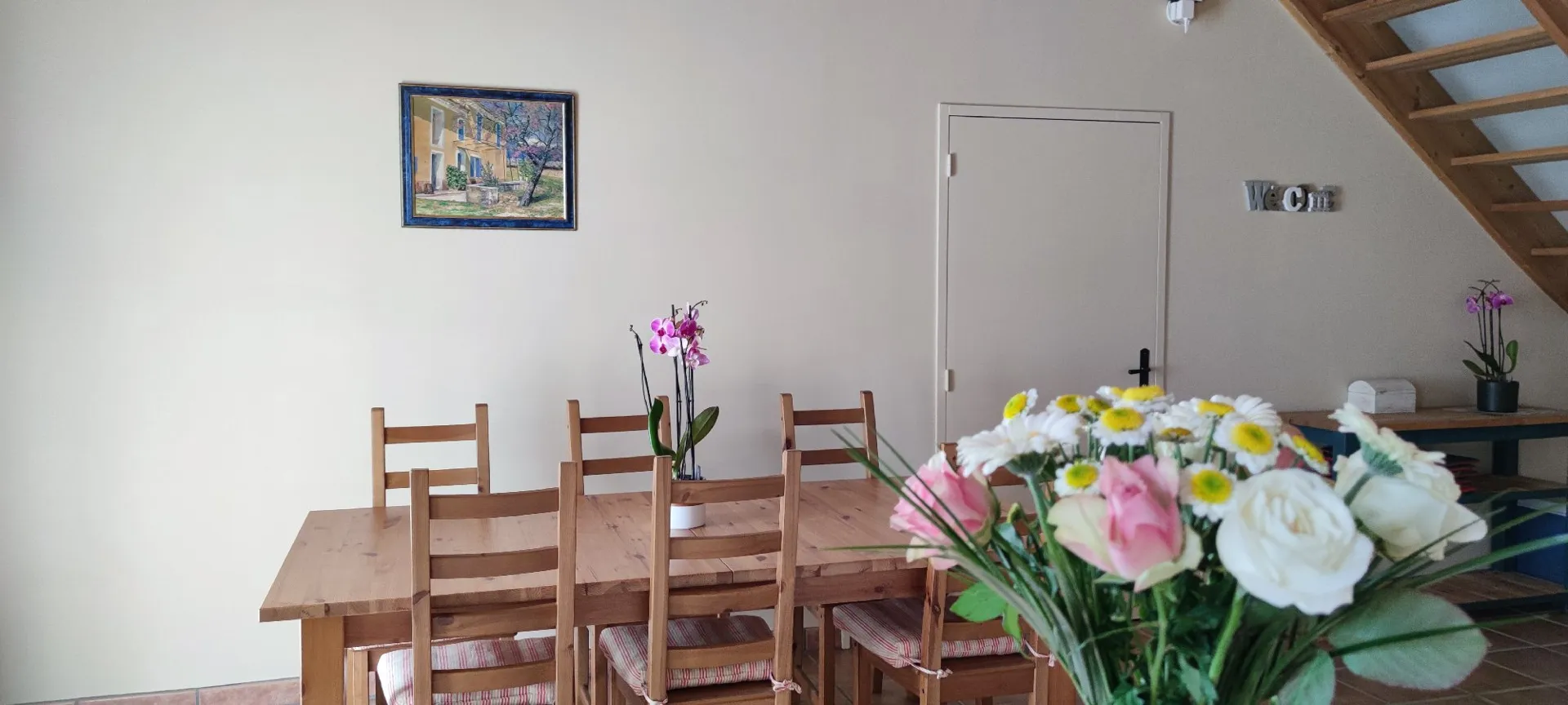 Cuisine équipée ouverte sur séjour (50 m²) salle de douche avec WC et terrasse. Equipements: frigo-congélateur, four, plaque vitrocéramique, lave-vaisselle, lave-linge, etc. Télévision, lecteur DVD, table, canapé. A l’étage: 1 chambre (lit 160) , 2 chambres (2 lits 90) 1 salle de douche + wc. Sont fournis: équipement bébé (sur demande), salon de jardin, barbecue, transat. Le terrain de la propriété (5000 m²) comporte une piscine sécurisée (5x10m) à partager avec transat. A disposition: une salle de sport avec baby-foot et table de ping-pong. Wifi. Jacuzzi privé en extérieur. La piscine 5x10m, à partager avec les 2 autres gîtes est chauffée. Vous pourrez profiter d’un terrain de pétanque.
